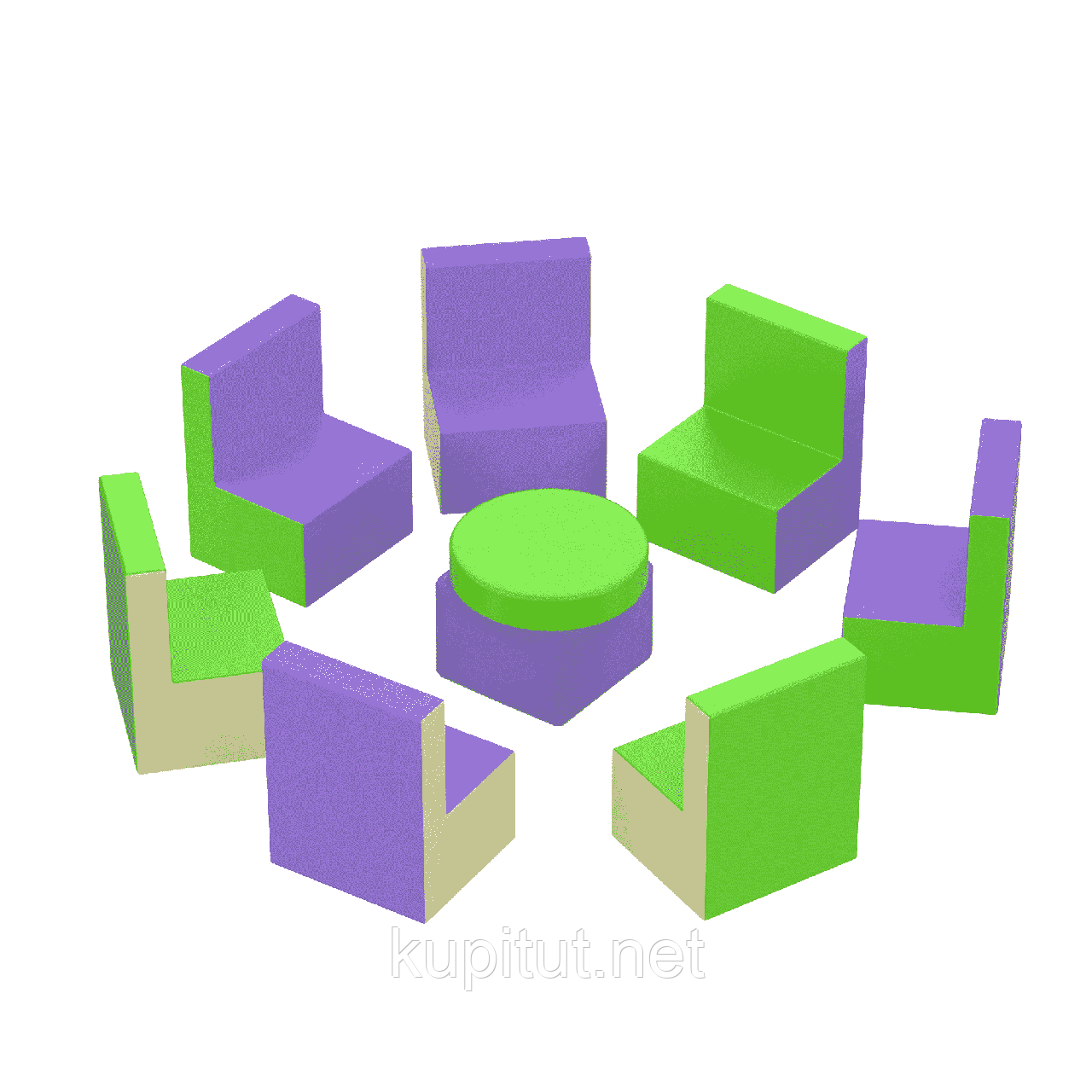 Набір дитячих меблів Світ Друзів KIDIGO складається з столика, що складається з 2 елементів, і 7 стільчиків. Невелика маса дозволяє дітям самостійно пересувати і розставляти елементи меблів. Набір підійде для гри у великій компанії, тому часто купується для дитячих садків, розвиваючих установ дошкільного типу (гуртки, розвиваючі студії), ігрових кімнат в ресторанах, торговельних центрах. Відсутність гострих, твердих кутів забезпечує безпеку малюків при грі.